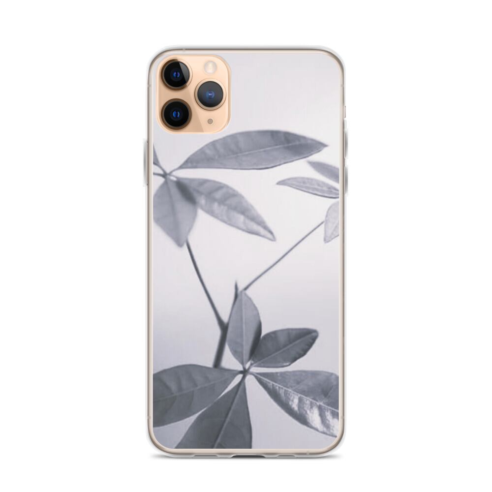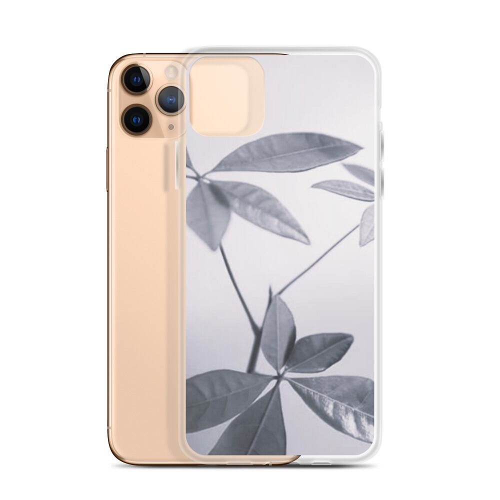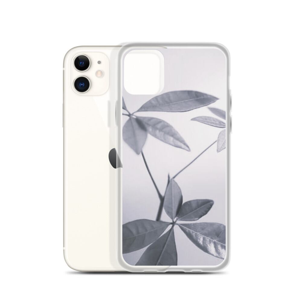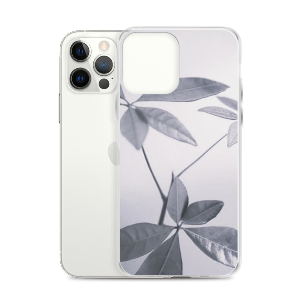 葉 植物 モノクロ iPhoneケース